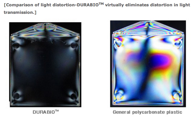 DURABIO is being marketed as alternative to impact-resistant petro-based polycarbonate. The disadvantage of traditional polyarbonates, according to MCC, is that it distorts in light transmission, which makes it difficult for uses to see the touch panel. The new grade nearly eliminated distortion in light transmission, making it easy to see the touch panel surface.